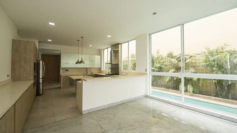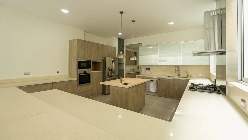 - Sala y comedor con techo de doble altura, elegancia y amplitud en cada detalle.