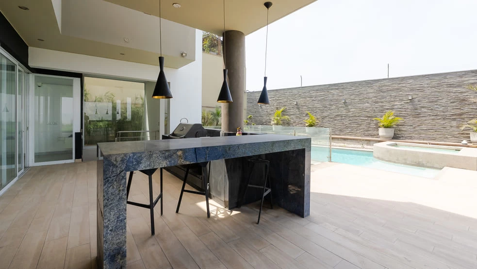 - Piscina infinita y área BBQ, creadas para experiencias sociales exclusivas.