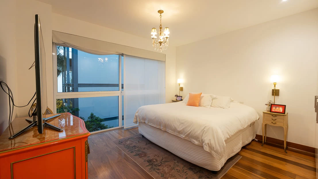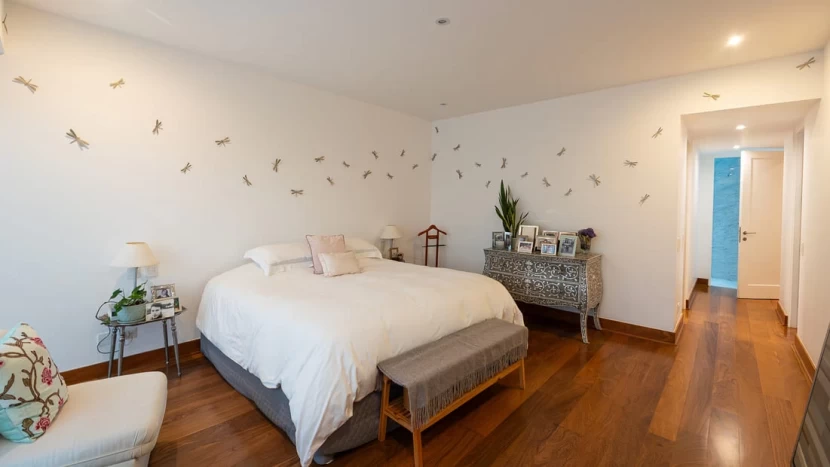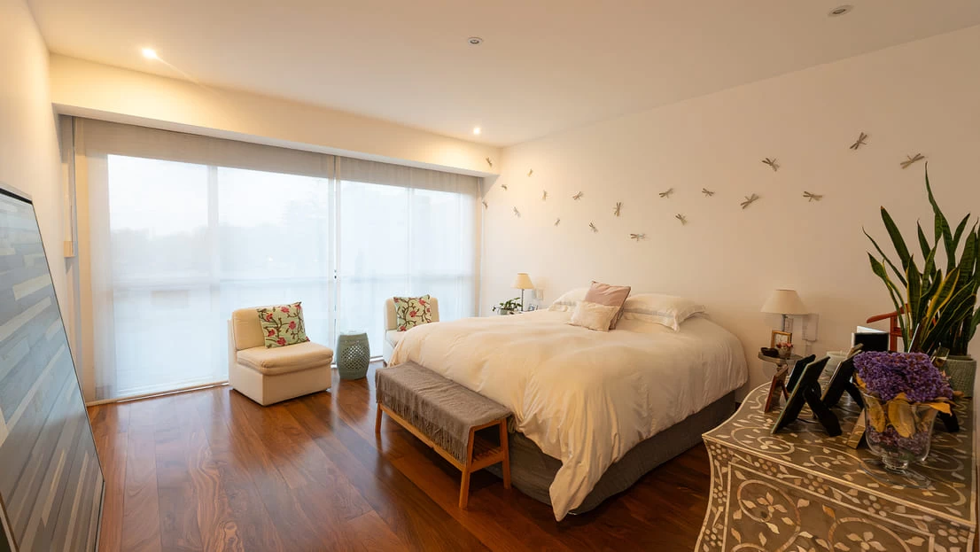 Los tres dormitorios secundarios, todos con baño en suite, ofrecen comodidad y privacidad; dos de ellos disfrutan de vistas al parque Gösta Lettersten, uno de los más encantadores de San Isidro.