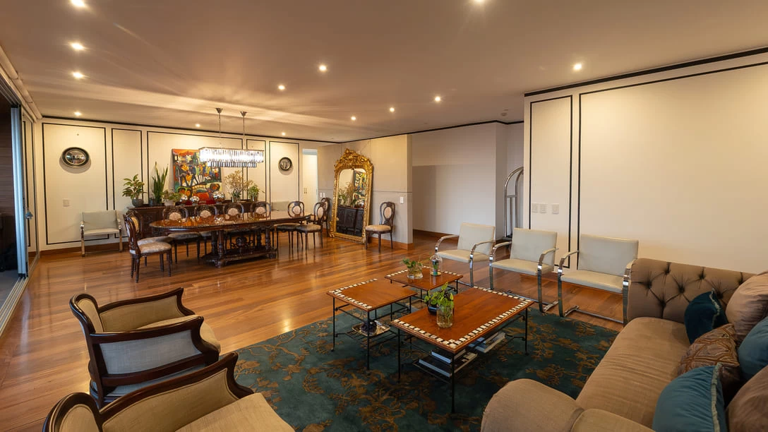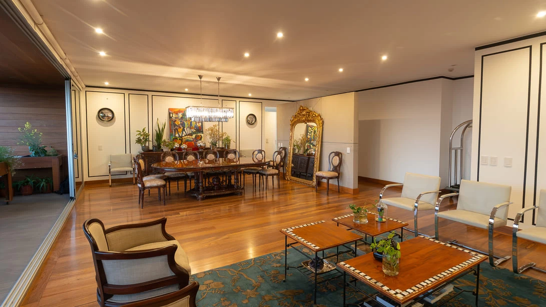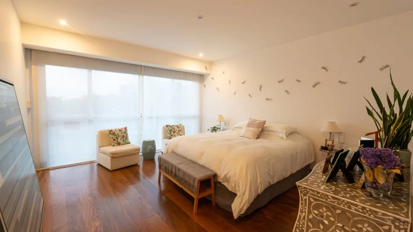 Desde el ingreso directo por ascensor, el espacio revela una residencia amplia y serena, con una distribución fluida donde cada ambiente se conecta visualmente con el exterior.