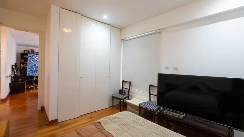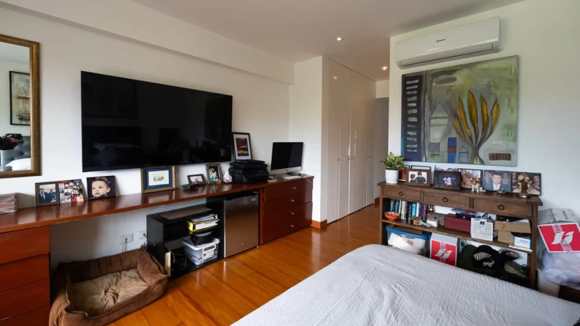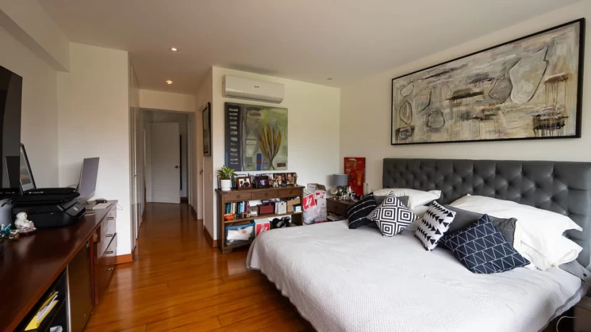 - Dormitorio principal con aire acondicionado, walk-in closet y vista al parque.