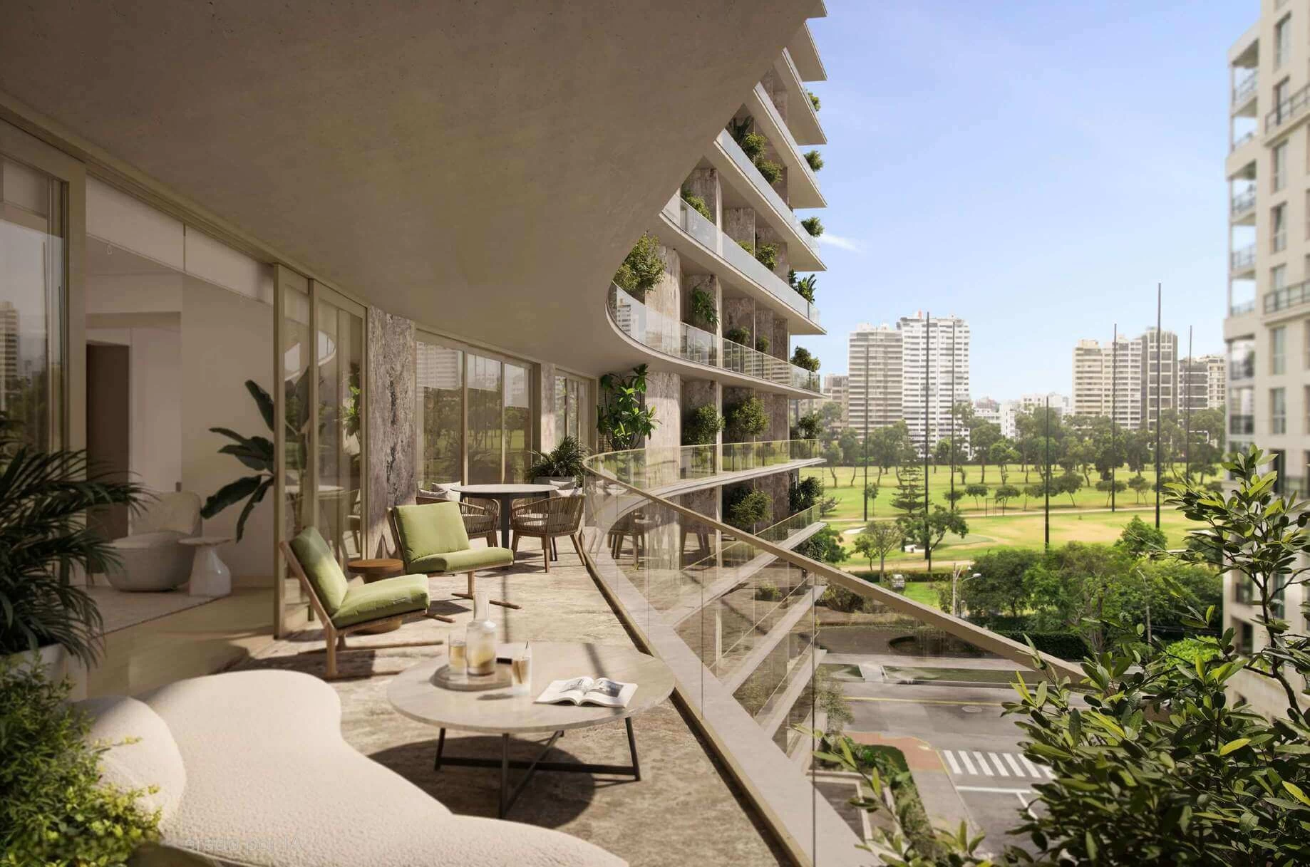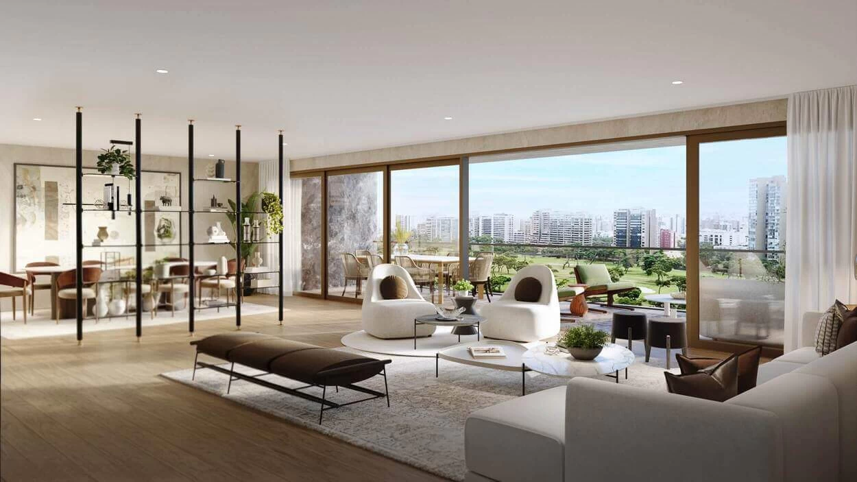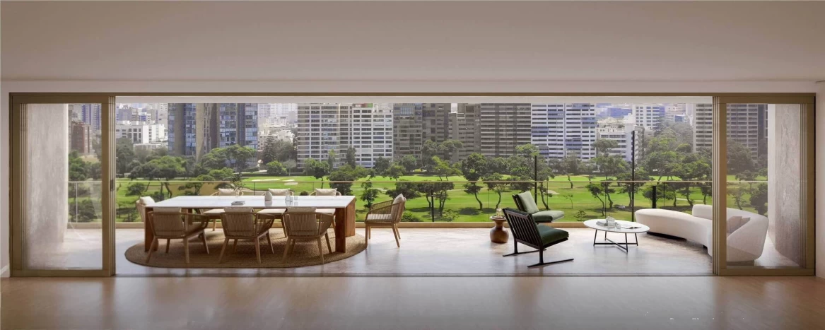 El resultado: un edificio que proyecta modernidad y belleza perdurable, con el Lima Golf Club como telón de fondo.